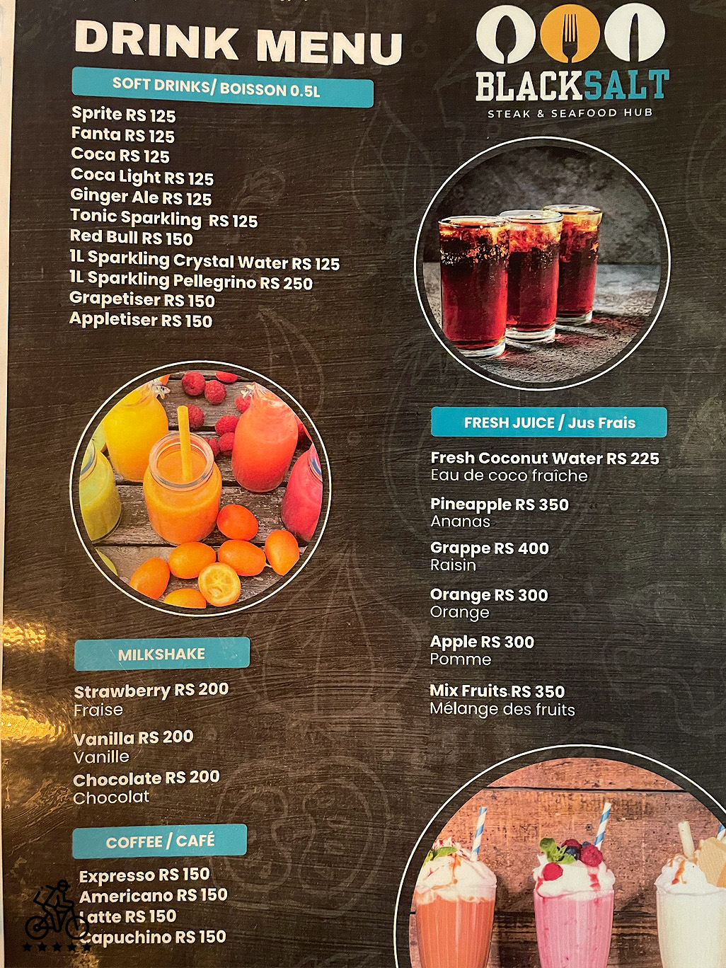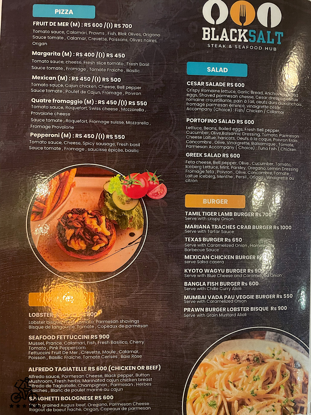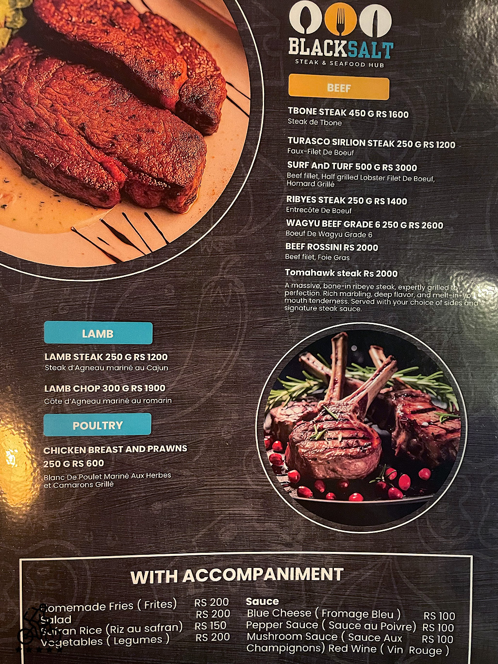 Black Salt is a new steakhouse in Flic en Flac at Cascavelle Mall. The restaurant specialises in steaks and European food. Its owner (and the chef) is a well-known serial restaurateur who runs multiple places in the west of Mauritius.