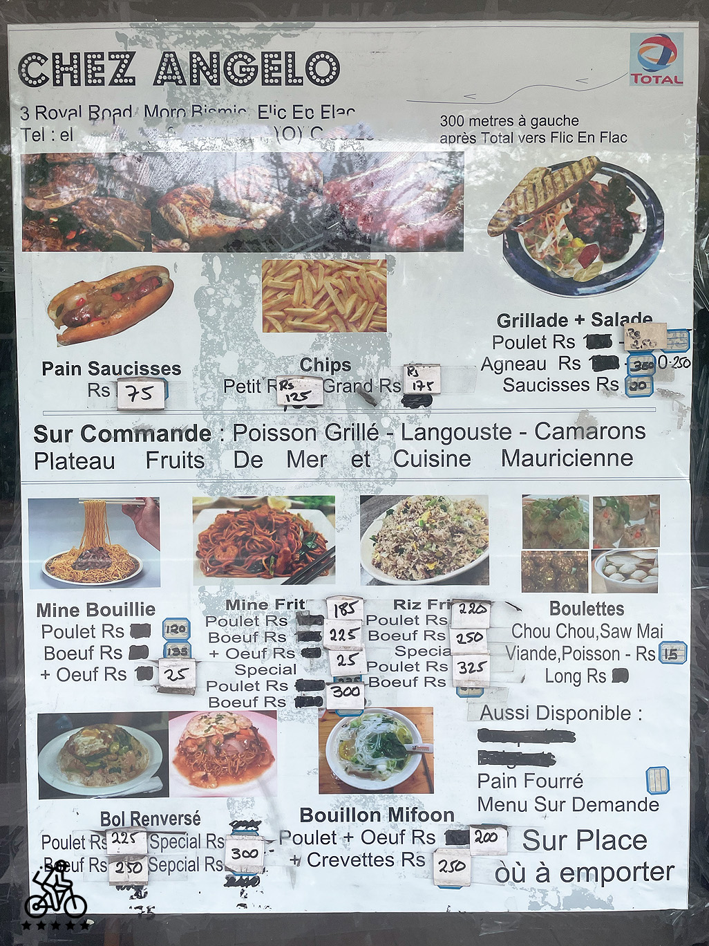 Chez Angelo is a Mauritian cuisine fast-food restaurant in Flic en Flac.