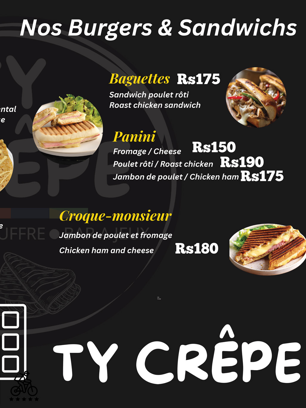 Ty Crepe menu is in the photos below. However, please note that the menu items and their prices might vary on the order date and time. While ordering via Grubmates, our delivery courier (a grubmate) will confirm the item availability, the current prices, and cooking time in person at the restaurant during the order placement.