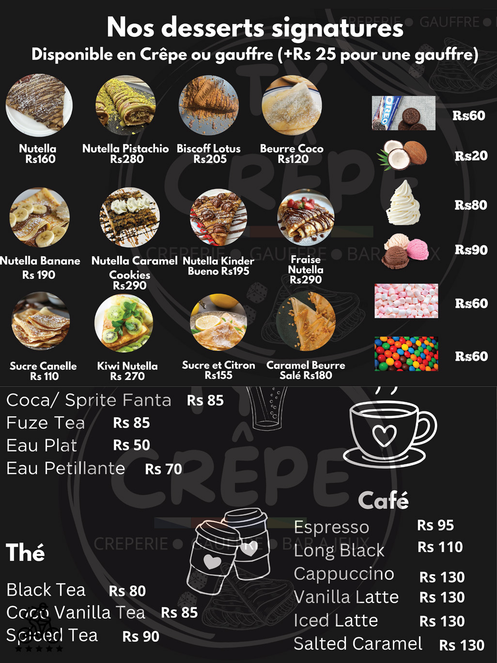Ty Crepe is a fast-food kiosk at Cascavelle Mall in Flic en Flac. That is the best and only restaurant in Mauritius that specializes in crepes - French pancakes (or Russian blini). The founder is a friendly neighbor, a dedicated entrepreneur, and a talented chef, cooking for the neighbors himself now and then.