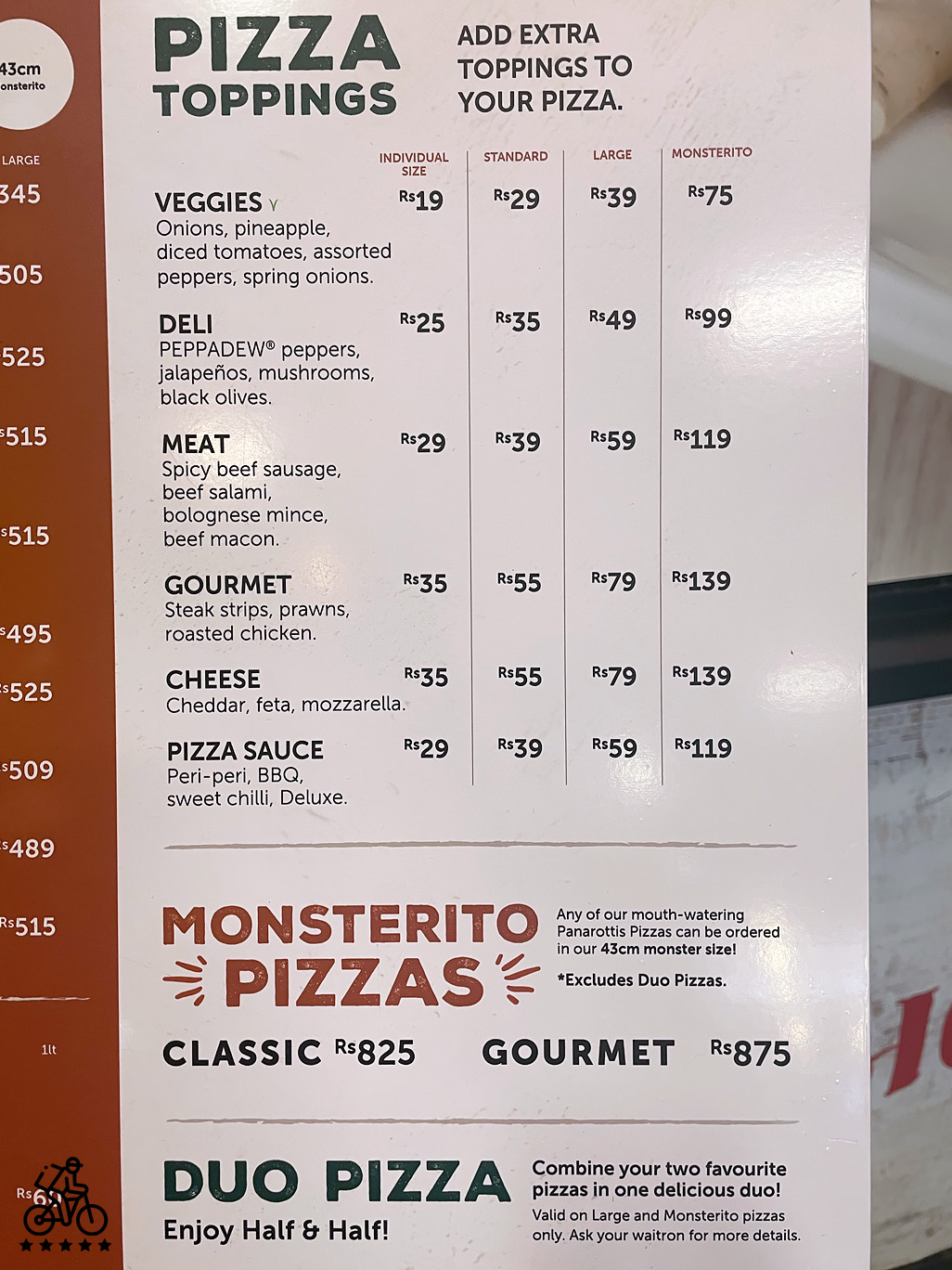 Panarottis Pizza Menu goes below in the photos. However, please note that the menu items and their prices might vary on the order date and time. When ordering via Grubmates, our delivery courier (a grubmate) will confirm item availability, current prices, and cooking time in person at the restaurant during the order.