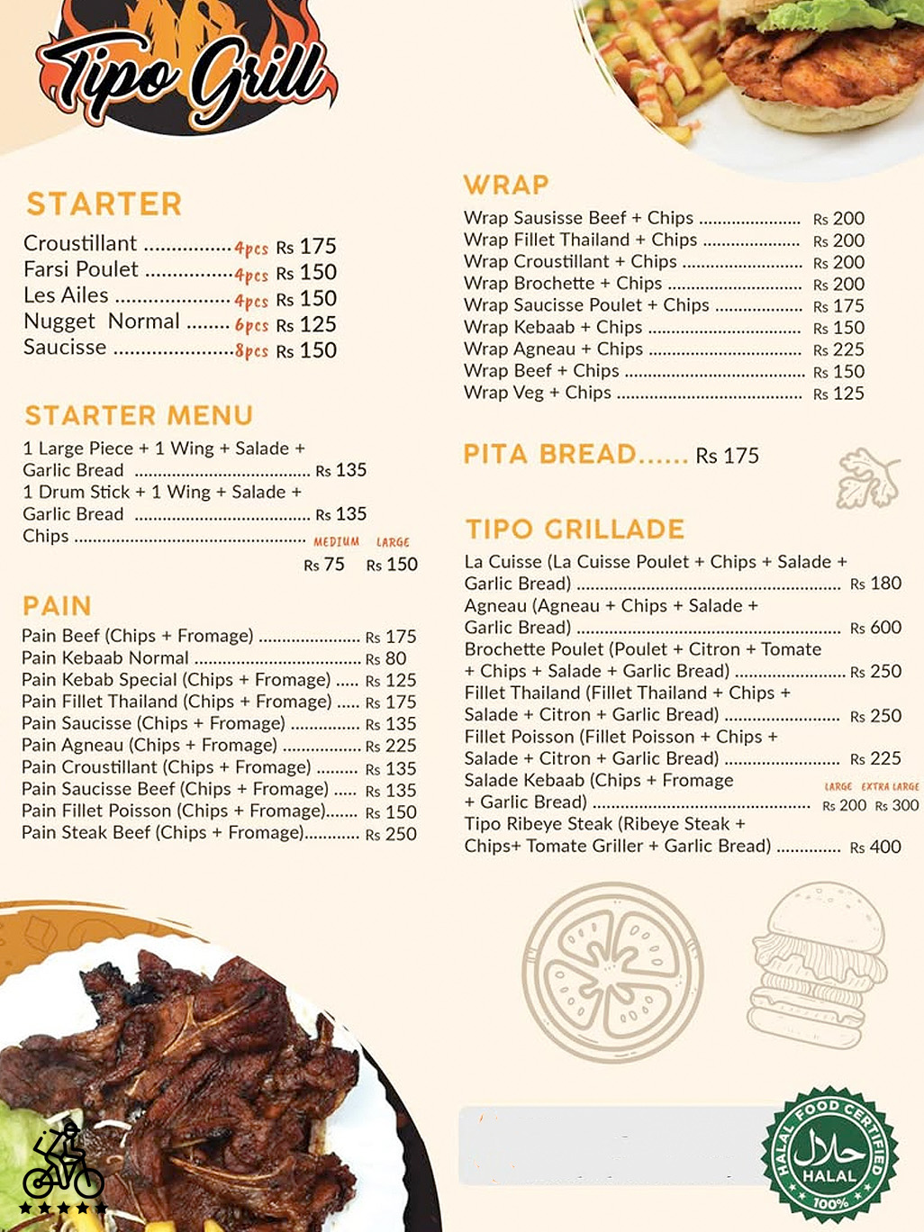 Tipo Grill Menu goes in the photos below. However, please, note that the menu items and their prices might vary on the order date and time. During the ordering process via Grubmates, our delivery courier (a grubmate) will confirm the item availability, the current prices, and cooking time in person at the restaurant during the order.